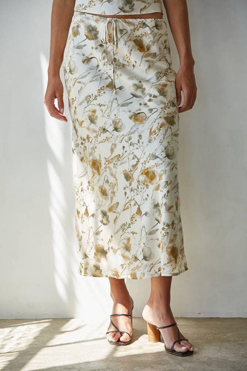 By Together - Woven Polyester Floral Print Midi Skirt in Cream