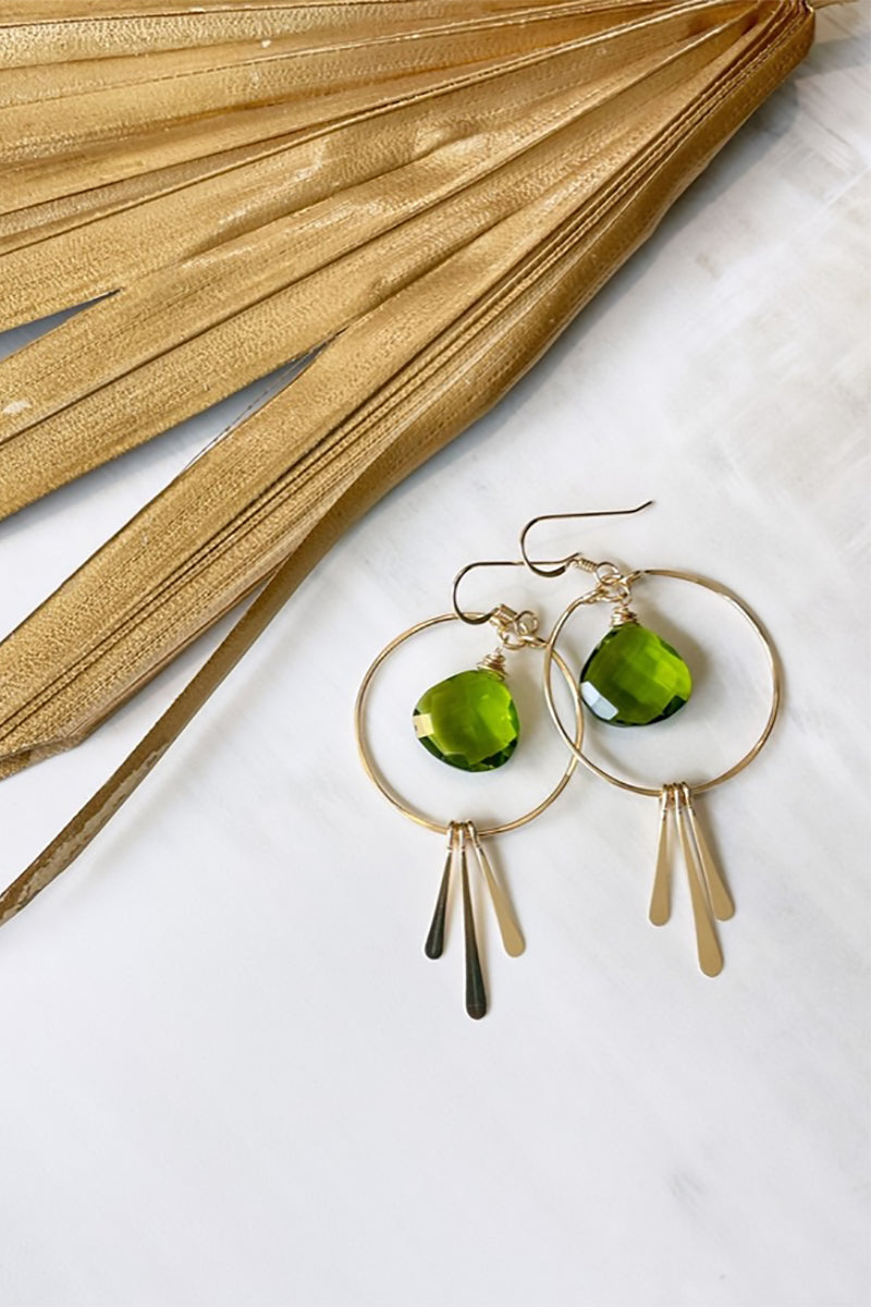 Quinn Sharp Handmade - Circle Hoops Green Gemstone Triple Fringe in Silver