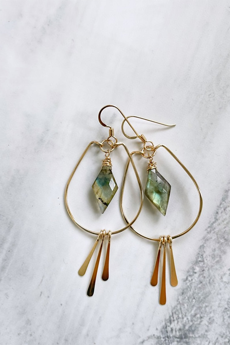 Quinn Sharp Handmade - Diamond Labradorite Teardrop Hoops in Gold