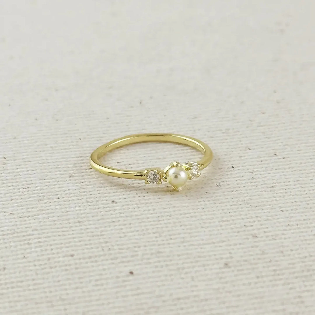 GoldFi - 18k Gold Filled Pearl and Crystal Ring - Size 5