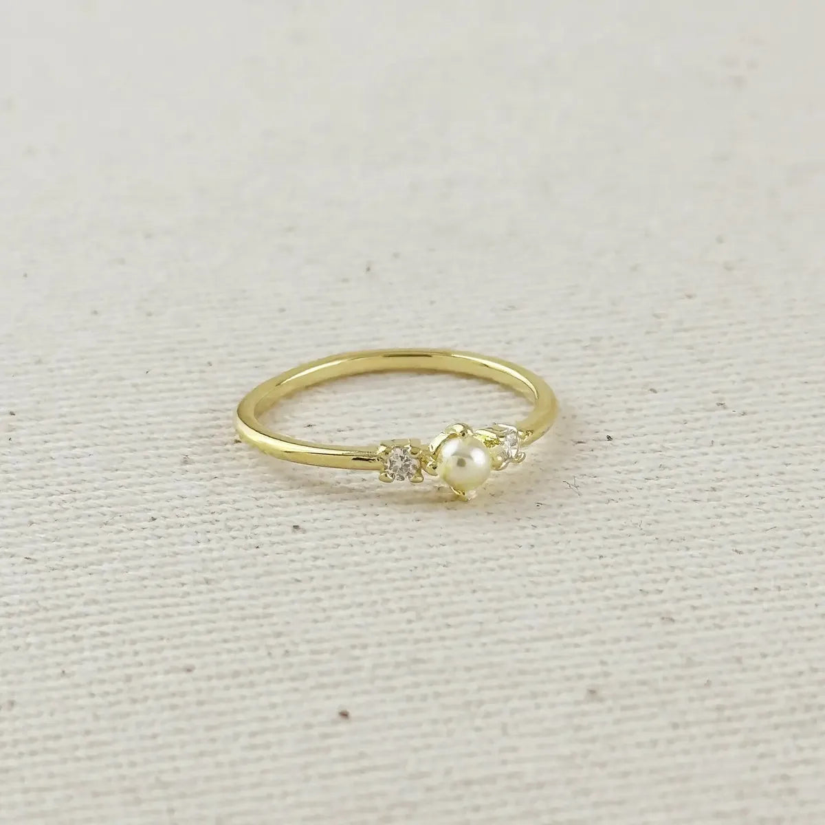 GoldFi - 18k Gold Filled Pearl and Crystal Ring - Size 7